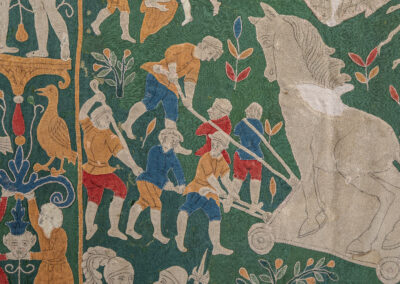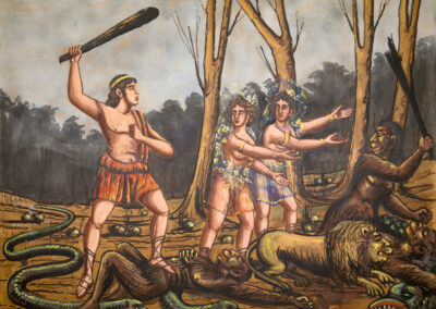 Il percorso di oltre 500 opere – tra dipinti e disegni, abiti e maschere, amuleti ed ex voto, attrezzi agricoli e veicoli di trasporto, strumenti musicali, giocattoli, fotografie, stampe e filmati – si configura come un’avventura che mette in luce le connessioni profonde tra fiabe, arti e tradizioni popolari, la storia reale che esse riflettono, adottando la fiaba come struttura narrativa in grado non solo di narrare il racconto espositivo ma di offrire una chiave simbolica per leggere il nostro passato insieme al nostro presente.