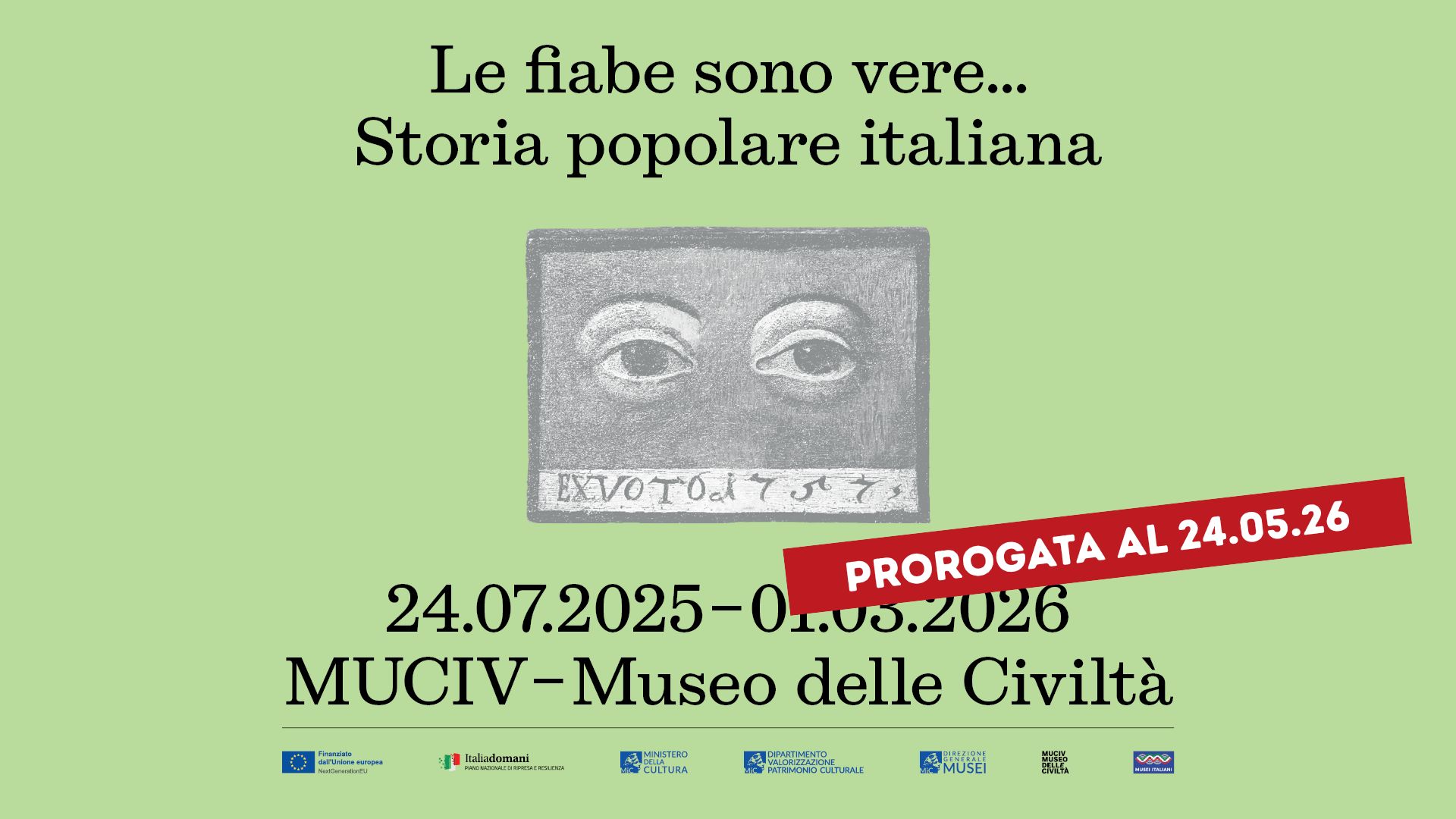 Il MUCIV-Museo delle Civiltà annuncia la proroga fino al 24 maggio 2026 della mostra Le fiabe sono vere… Storia popolare italiana.